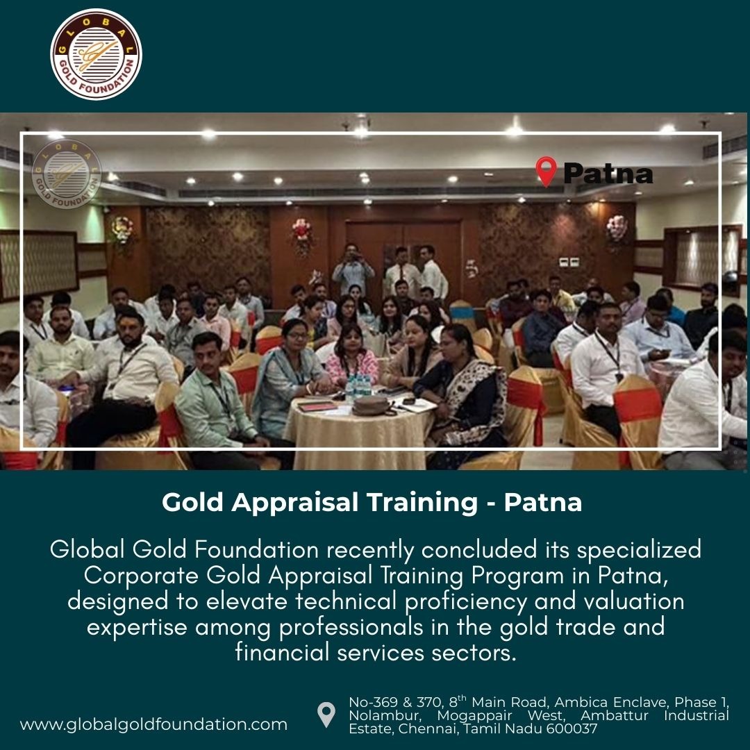 Gold Appraisal Training Program Successfully Conducted in Patna Global Gold Foundation Advances Industry Excellence Through Skill Development The Global Gold Foundation proudly announces the successful completion of its Gold Appraisal Training Program in Patna, Bihar, reaffirming its commitment to raising professional standards in the gold and jewelry sector. This specialized initiative was developed to strengthen the technical knowledge and appraisal expertise of professionals across the gold trade, financial services, and jewelry industry. Program Overview Led by seasoned experts with extensive industry experience, the training provided participants with a robust, hands-on curriculum covering key competencies, including: Gold purity testing using standard and advanced techniques Hallmark identification and BIS compliance protocols Detection of counterfeit jewelry and authenticity verification Accurate net weight calculation for pricing and valuation Quality assessment based on karat, texture, color, and hallmarking Strategic insights into launching and managing jewelry businesses in line with regulatory frameworks Participant Profile The Patna session attracted a dynamic and diverse cohort of professionals, including: Jewelers and gold buyers Bullion traders and pawnbrokers Bank gold loan officers and NBFC professionals Aspiring entrepreneurs in the gold and jewelry sector Impact & Recognition Through a balanced mix of technical instruction and practical exercises, participants acquired vital, real-world skills necessary for conducting accurate and trustworthy gold appraisals. This initiative further strengthens the Global Gold Foundation’s standing as a premier institution for certified gold appraisal training in India. We extend our heartfelt congratulations to all participants in Patna for their successful completion of the program and applaud their dedication to continuous professional development. Stay connected with Global Gold Foundation for upcoming workshops, certification courses, and industry training sessions across India.