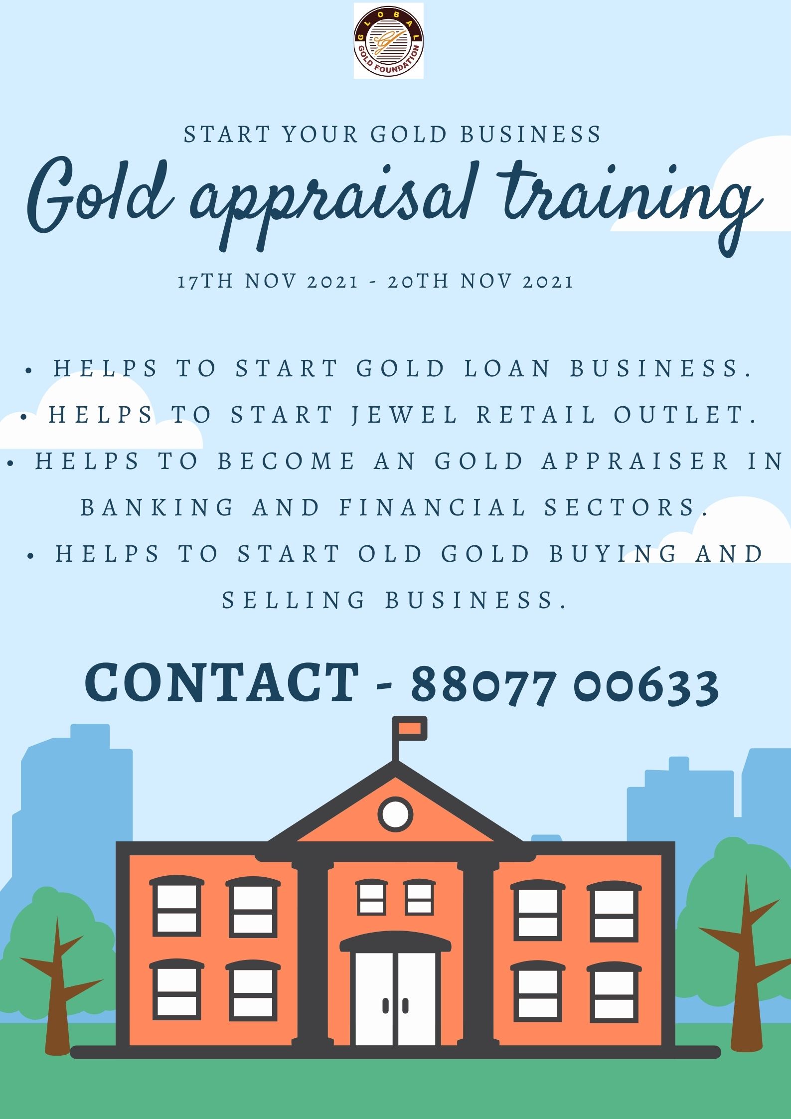 Gold Appraisal training program organised by Global Gold Foundation pvt Ltd .This program helps to start Gold Loan Business, Old Gold Buying Business, BANK, BANKING, BANKJOB, BANKS, BANKJOBS, EDUCATION, PAWN, PAWNBROKER, PAWNSHOP, JEWEL, JEWELLERS, JEWELLERY, JOBS, PUBLICJOBS, PUBLICSECTOR, GOLD, GOLDSMITH, APPRAISER, APPRAISAL, GOVERNMENT, GOVERNMENTJOBS, INSTITUTE, INDIA, TAMILNADU, TAMIL, JEWELS, CHAIN, RING, TRAININGINSTITUTION, TRAINING, . For details contact 9652611011