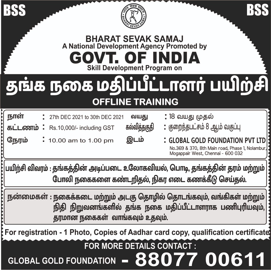 Gold Appraisal training program organised by Global Gold Foundation pvt Ltd .This program helps to start Gold Loan Business, Old Gold Buying Business, BANK, BANKING, BANKJOB, BANKS, BANKJOBS, EDUCATION, PAWN, PAWNBROKER, PAWNSHOP, JEWEL, JEWELLERS, JEWELLERY, JOBS, PUBLICJOBS, PUBLICSECTOR, GOLD, GOLDSMITH, APPRAISER, APPRAISAL, GOVERNMENT, GOVERNMENTJOBS, INSTITUTE, INDIA, TAMILNADU, TAMIL, JEWELS, CHAIN, RING, TRAININGINSTITUTION, TRAINING, . For details contact 88077 00611