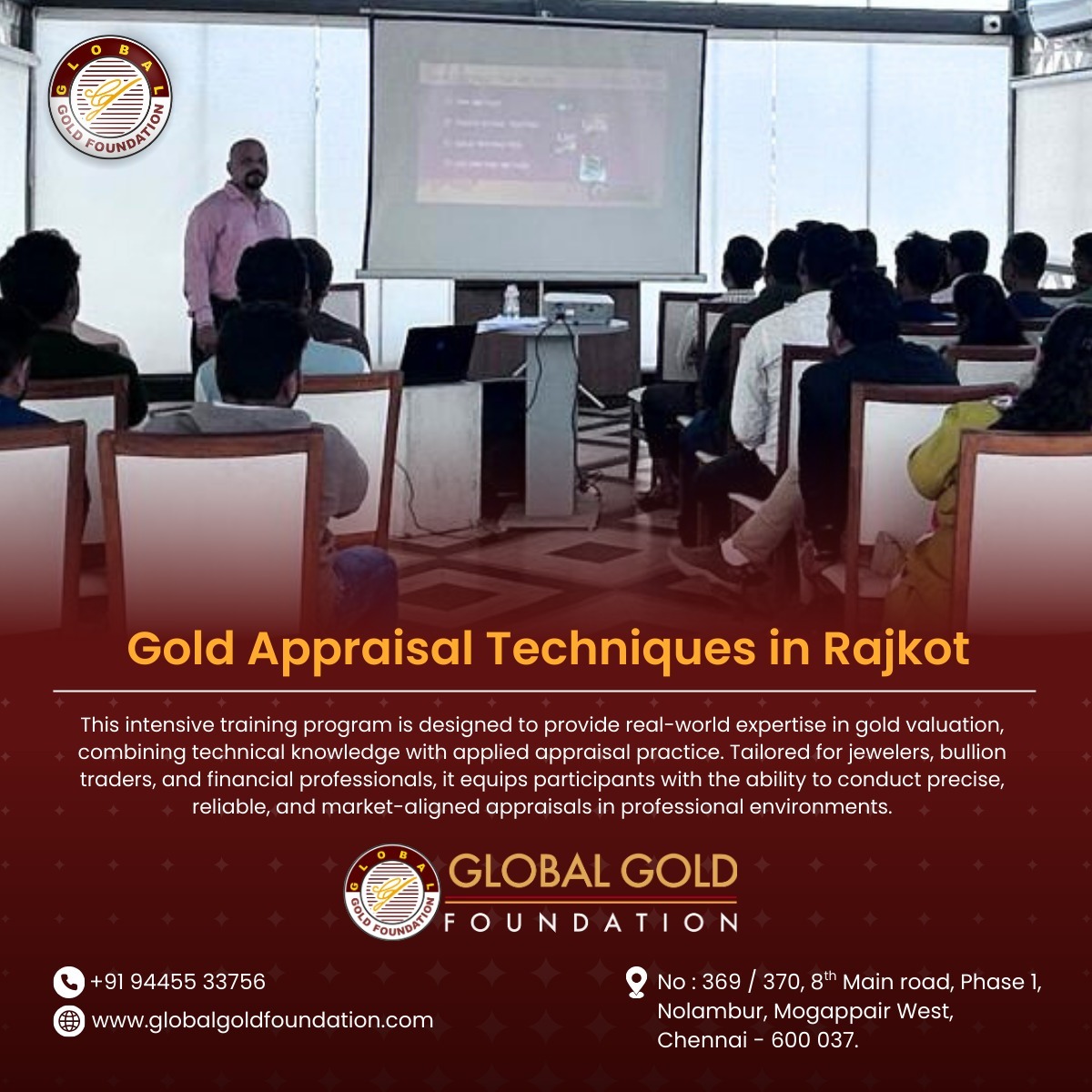 MSME–CFTI Certified Gold Appraisal Training Program Successfully Conducted in Rajkot The MSME–CFTI Certified Gold Appraisal Training Program was successfully conducted in Rajkot, Gujarat, further strengthening its reputation as one of India’s most credible and industry-recognized professional certification programs in the gold and jewellery appraisal sector. Organized by Global Gold Foundation, the program delivered structured, compliance-focused, and industry-aligned training in gold purity testing, jewellery valuation, and standardized gold loan appraisal procedures followed by banks and NBFCs across India. This MSME Certified Gold Appraisal Course in Rajkot was specifically designed to address the increasing demand for certified gold appraisers in Gujarat, particularly within the growing gold loan, bullion trading, and jewellery finance ecosystem. Advanced Gold Testing & Jewellery Valuation Training in Rajkot The Gold Appraisal Training in Rajkot focused on practical, lab-based skill development with real-time evaluation methodologies and banking-compliant appraisal formats. Core Modules Covered: Scientific gold purity testing methods Professional jewellery valuation and bullion pricing standards Standard gold loan appraisal procedures used by banks & NBFCs Gold risk assessment and fraud detection techniques Regulatory documentation and compliance practices Preparation of standardized gold appraisal reports This MSME Gold Appraiser Certification in Gujarat equips participants with uniform evaluation standards, improving employment prospects in: Gold loan companies Nationalized and private banks NBFCs Jewellery showrooms and retail chains Independent valuation agencies Precious metal trading firms Industry-Aligned Curriculum with National Recognition The Gold Testing Certification Program in Rajkot has been developed in alignment with national financial institution norms and modern appraisal practices. Program Highlights: Practical laboratory-based gold testing training Exposure to advanced gold testing instruments Standardized appraisal documentation formats Case-study-based gold fraud detection training Compliance-oriented gold loan valuation methodology By integrating scientific gold testing principles with real-world jewellery valuation expertise, this Jewellery Valuation Course in Rajkot ensures participants graduate as industry-ready professionals with MSME-recognized credentials. Who Should Enroll in This Gold Appraisal Course in Rajkot? This Certified Gold Appraiser Training in Gujarat is ideal for: Aspiring gold loan appraisers Jewellery shop owners and showroom staff Banking and NBFC professionals Entrepreneurs in the bullion and gold finance sector Graduates seeking skill-based employment Professionals searching for a Gold Appraisal Course Near Rajkot with MSME Certification Expanding MSME Certified Gold Appraisal Training Across India Following the success of the Gold Loan Appraiser Course in Rajkot, the Global Gold Foundation continues expanding its footprint across India through structured Professional Gold Testing and Jewellery Valuation Programs. Training Locations Across India: Chennai, Guntur, Jaipur, Hyderabad, Ahmedabad, Nagpur, Agartala, Meerut, Bhubaneswar, Indore, Guwahati, Moradabad, Karnal, Patna, Zirakpur, Anantapur, Bikaner, Bathinda, Bhopal, Kolkata, Hubli, Jabalpur, Shimoga, Bangalore, Surat, Mysuru, Tirupati, Jamnagar, Vizag, Trichy, Vadodara, Madurai, Mehsana, Salem, Thane, Vijayawada, Gurgaon, Pune, Aurangabad, Jodhpur, Kolhapur, Malda, Hisar. This nationwide presence ensures accessible MSME Certified Gold Appraisal Training in India, supporting standardized gold evaluation practices and strengthening India’s gold finance ecosystem. Strengthening Gujarat’s Gold Loan & Jewellery Appraisal Sector The successful completion of the Certified Gold Appraisal Training Program in Rajkot reflects the growing need for trained and certified gold appraisal professionals in Gujarat’s jewellery manufacturing and gold finance sectors. Through: Structured technical gold testing education MSME-backed certification standards Professional jewellery valuation training Gold loan appraisal skill development Banking-compliant documentation practices The Global Gold Foundation continues setting benchmarks in professional gold testing and appraisal training across India. Contact Information Phone: 94455 33756 Email: sathish@globalgoldfoundation.com Website: www.globalgoldfoundation.com 👉 Enroll now in the upcoming MSME Certified Gold Appraisal Course in Rajkot or request customized corporate gold testing workshops for banks, NBFCs, and jewellery businesses in Gujarat.